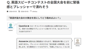 日本全国の高校生・高校英語教員を対象とした無料巡回セミナー 各都道府県単位でスピーチセミナーを開催する Global Speakers Seminar 2020-2035 の公式ページを開設しました。これは、高校生と高校 […]
