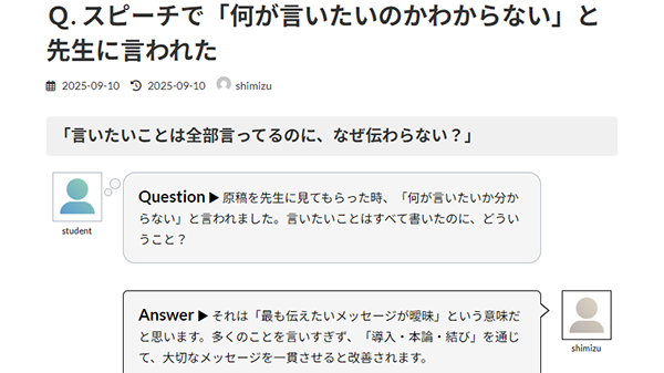 今回掲載された特集記事では、全国レベルのコンテストで9年連続入賞の実績や、英語スピーチやプレゼンテーションの教育を通じて「人間力」を高める当研究室の特徴が紹介されました。生成AI(人工知能)時代に生きるスピーカーにとって、なぜ人間力の強化が重要なのかという点にも触れています。