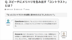 とにかく動詞を意識することから伝わり方を変えよう! 多くの単語が並ぶスピーチ原稿を分かりやすく伝えるには、動詞を大切に扱いましょう。お花畑で一輪の花がひときわ目立って咲くように、英語スピーチでは大切な"動詞"をきちんと聴 […]